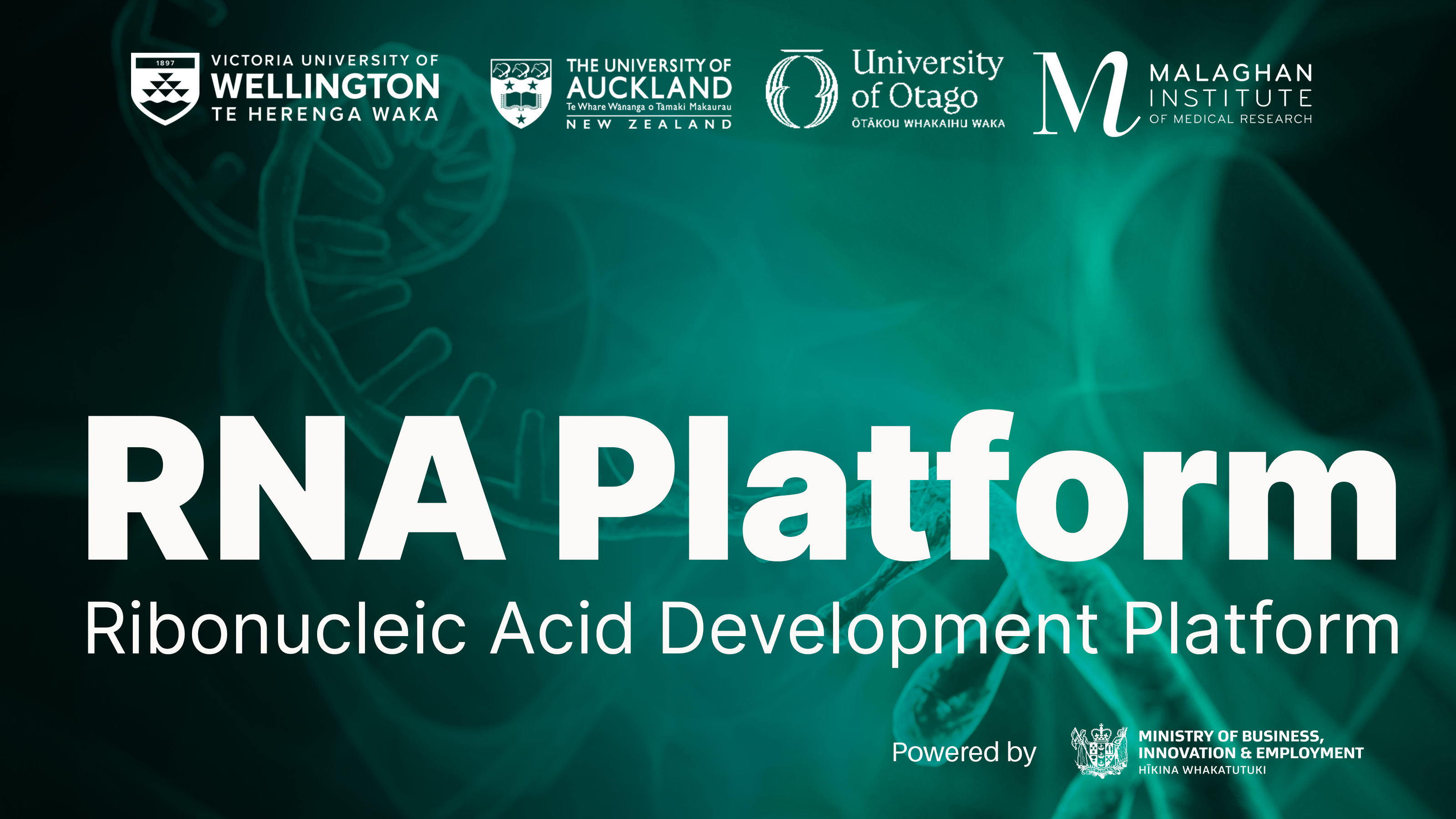 We host the New Zealand RNA Development Platform. Its aim is to ensure New Zealand has well-connected and world-class research capability to strengthen the use and commercialisation of RNA technology.