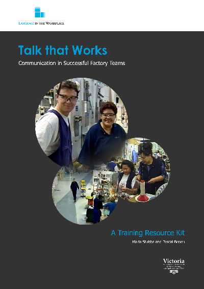 Includes transcripts of the spoken and written texts on the video, explanatory notes for teachers/trainers and suggestions for using the materials. The video and accompanying handbook are based on actual footage of workplace interaction and interviews with factory staff. These recordings were collected by Maria Stubbe and Pascal Brown as part of a Language in the Workplace action research project on communication in multi-cultural factory teams.