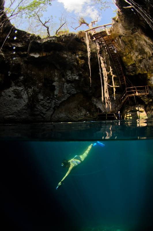 The Mexican government and local communities are working together to conserve and educate about the importance of cenotes (sinkholes) in the Mayan region. Through conservation projects in rural areas, the funds granted are invested in infrastructure (stairs, information signs, gravel roads, rubbish containers) and hiring keepers from the local community. Photo Credit: Benjamin Magana-Rodriguez.