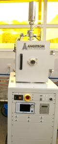 The Angstrom engineering evaporator has two thermal evaporation sources. It is suitable for the deposition of metals such as Al, Au and Ag. Both sources have an INFICON rate deposition controller which enables the creation of very accurate film thicknesses, but co-deposition is not possible. The rotating substrate holder is suitable for samples up to four inches in diameter. Users are required to bring their own shadow mask if required, and frequent users should provide their own boats and deposition materials.