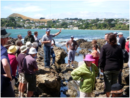 Cliff Atkins and Dene Carroll recently ran a very successful VUW ‘Continuing Education’ lecture and fieldtrip called “Wellington Rocks”. Over 50 members of the public ranging from 18 to 80 were introduced to Wellington’s fantastic geology and landscape. The course aims to give people a hands-on interactive guide to ‘reading the rocks’ and interpreting the landscape. It follows similar successful (and oversubscribed) trips to the Wairarapa led by Ciff over the last few years.