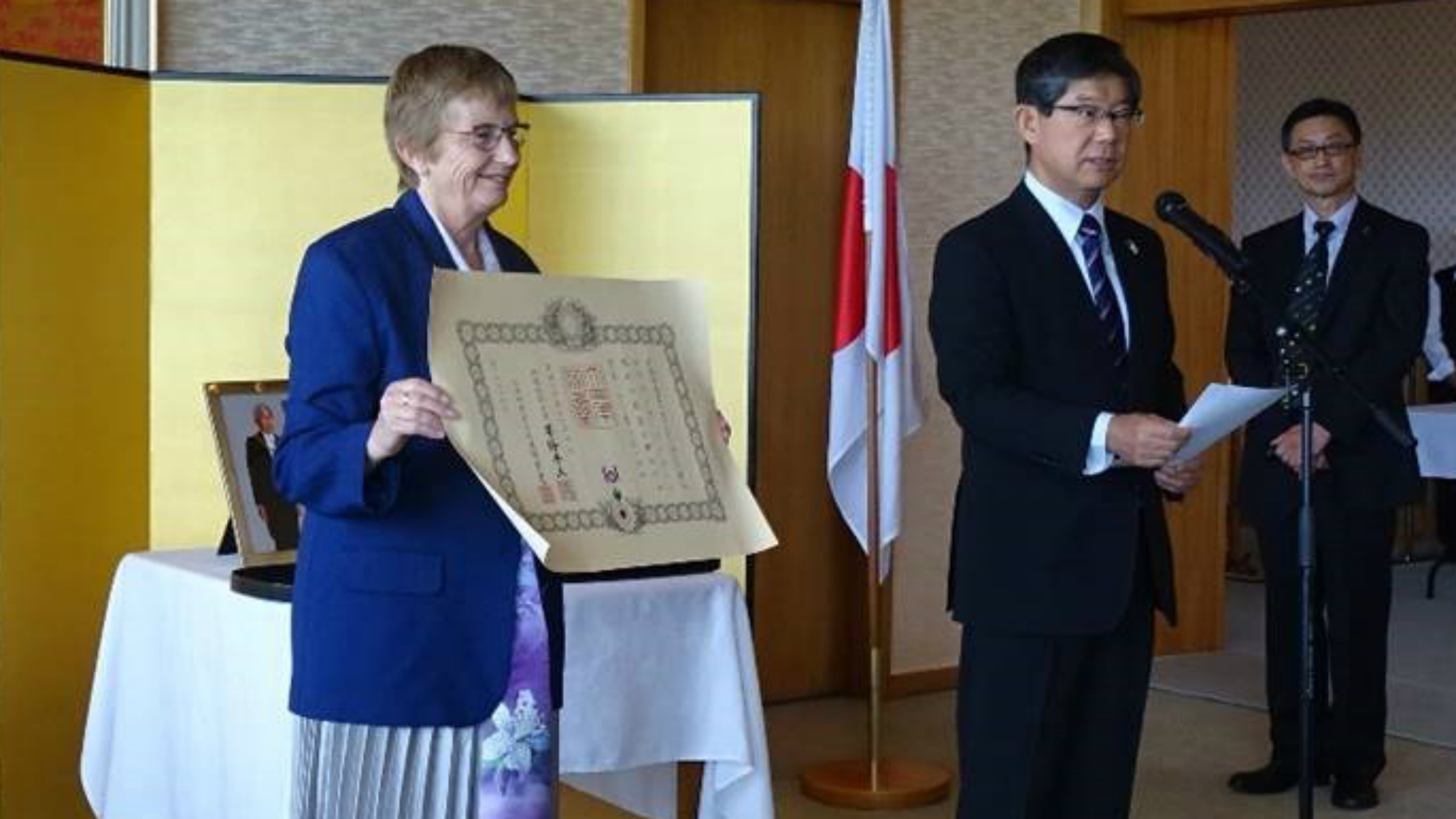 Edwina Palmer bestowed with the Order of the Rising Sun, Gold Rays with Rosette