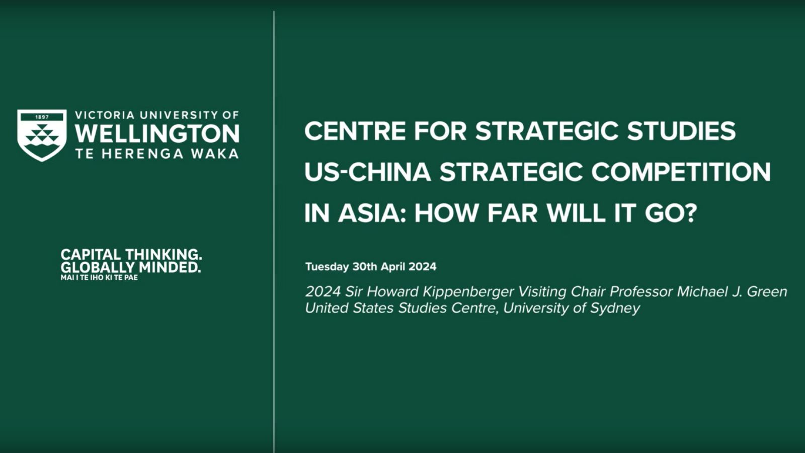Sir Howard Kippenberger Visiting Chair in Strategic Studies Dr Michael Green talked about the US-China long-term strategic competition and three main questions.